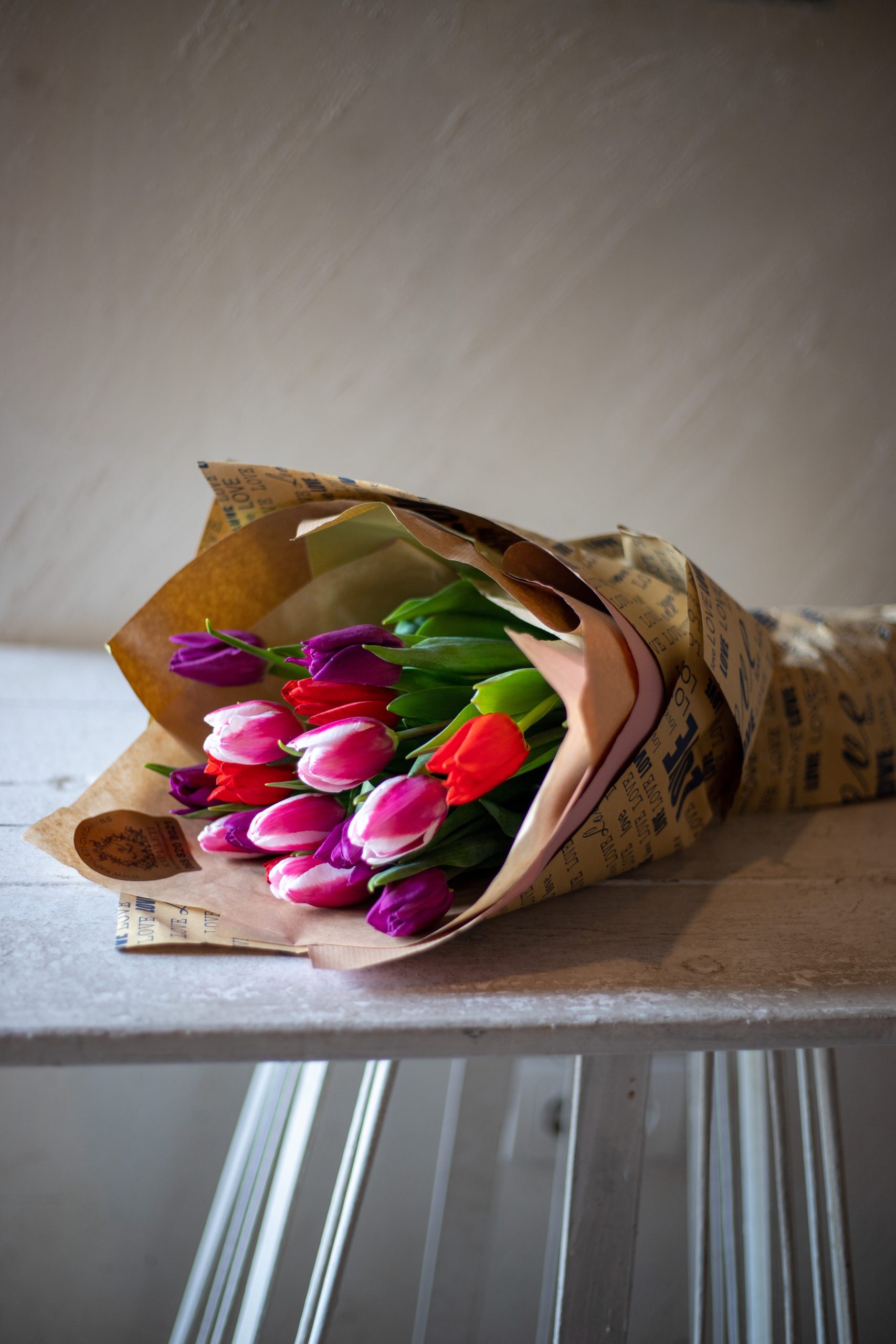 Buket od 15 lala u 3 boje crvenih i tamnijih nijansi (u zavisnosti od dostupnosti).